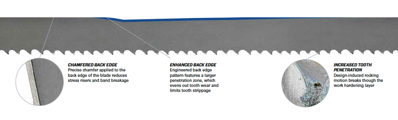 Øget tool life: Jævnere belastning og reduceret varmeudvikling mindsker sliddet på både tand og klingerække, hvilket giver båndsavklingen en længere tool life.